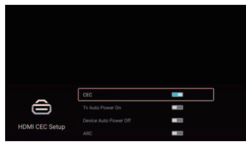 Naciśnij przyciski nawigacji aby wybrać HDMI CEC Ustawienia, następnie OK aby wejść do sub menu.