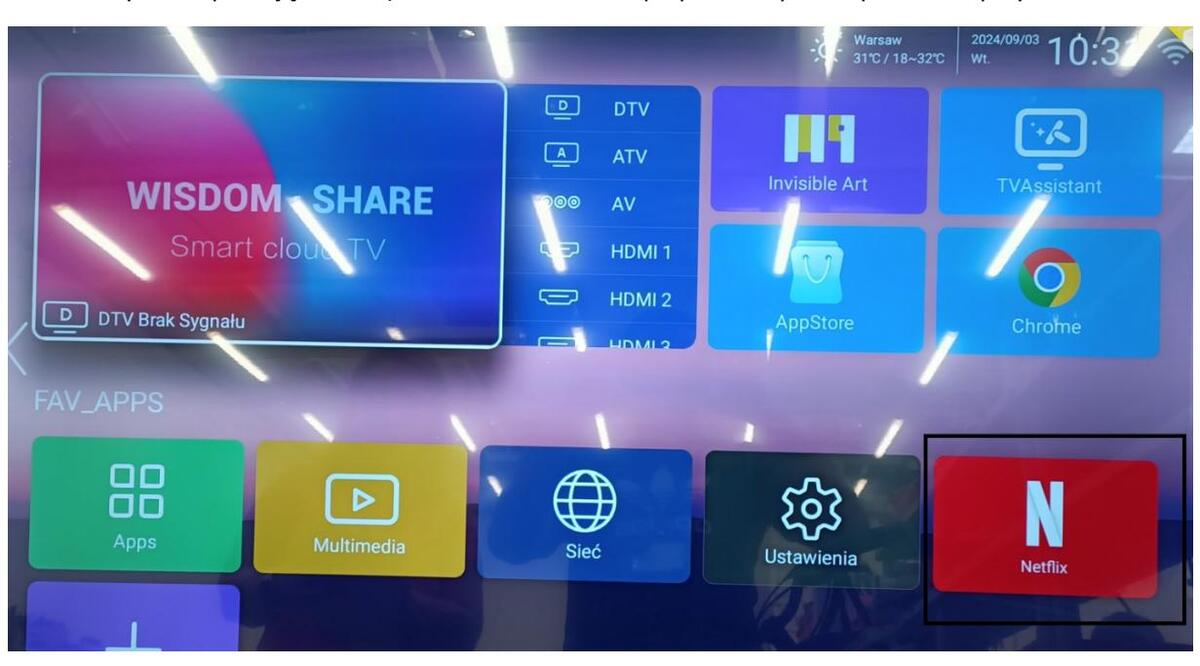 1. Wybierz aplikację Netflix (ikona umieszczona na pulpicie, na pilocie potwierdź przyciskiem ENTER