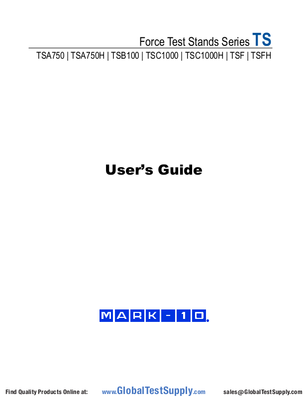 Thank you for purchasing a Mark-10 Series TS Force Measurement Test Stand. We are confident that you