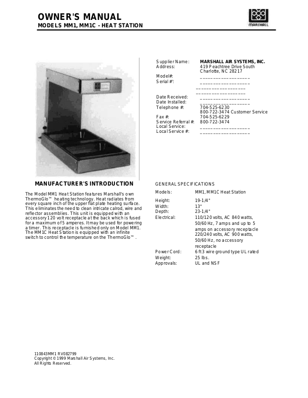 FOR INTERNATIONAL INSTALLATIONS - PLEASE CONTACT YOUR LOCAL MARSHALL AIR