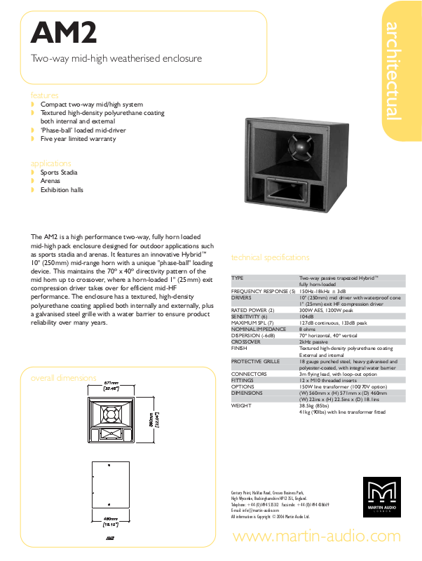 DISPERSION (-6dB) 70º horizontal, 40º vertical