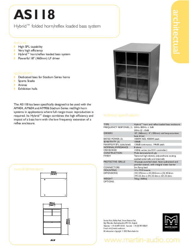 MAXIMUM SPL (calculated) 138dB continuous, 144dB peak