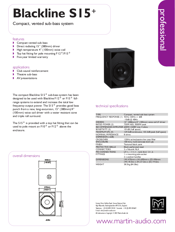All information is Copyright © 2007 Martin Audio Ltd.