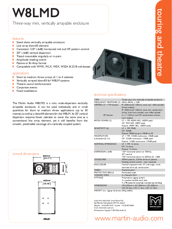The Martin Audio W8LMD is a mini, wide-dispersion vertically