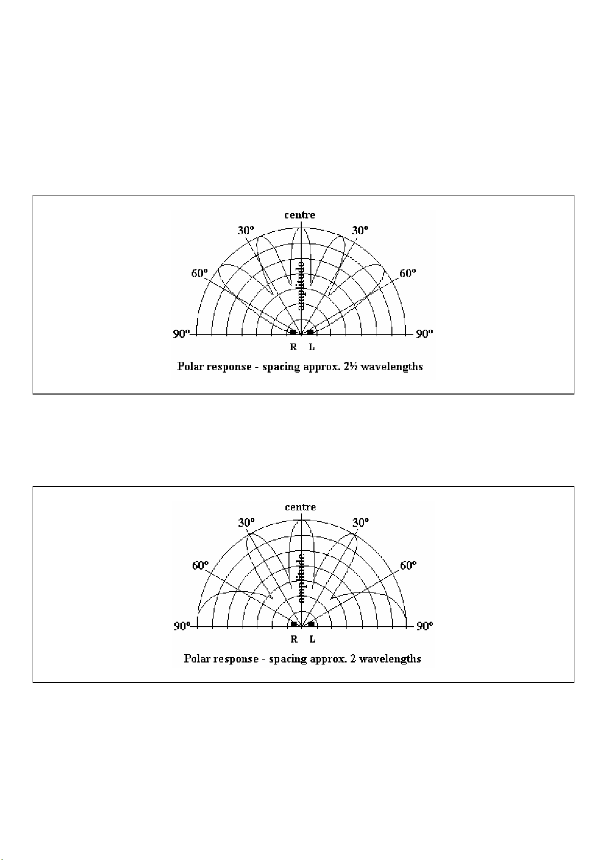 around the sides. There are now strong lobes at the sides because the spacing is now an even number of halfwavelengths at this particular frequency.