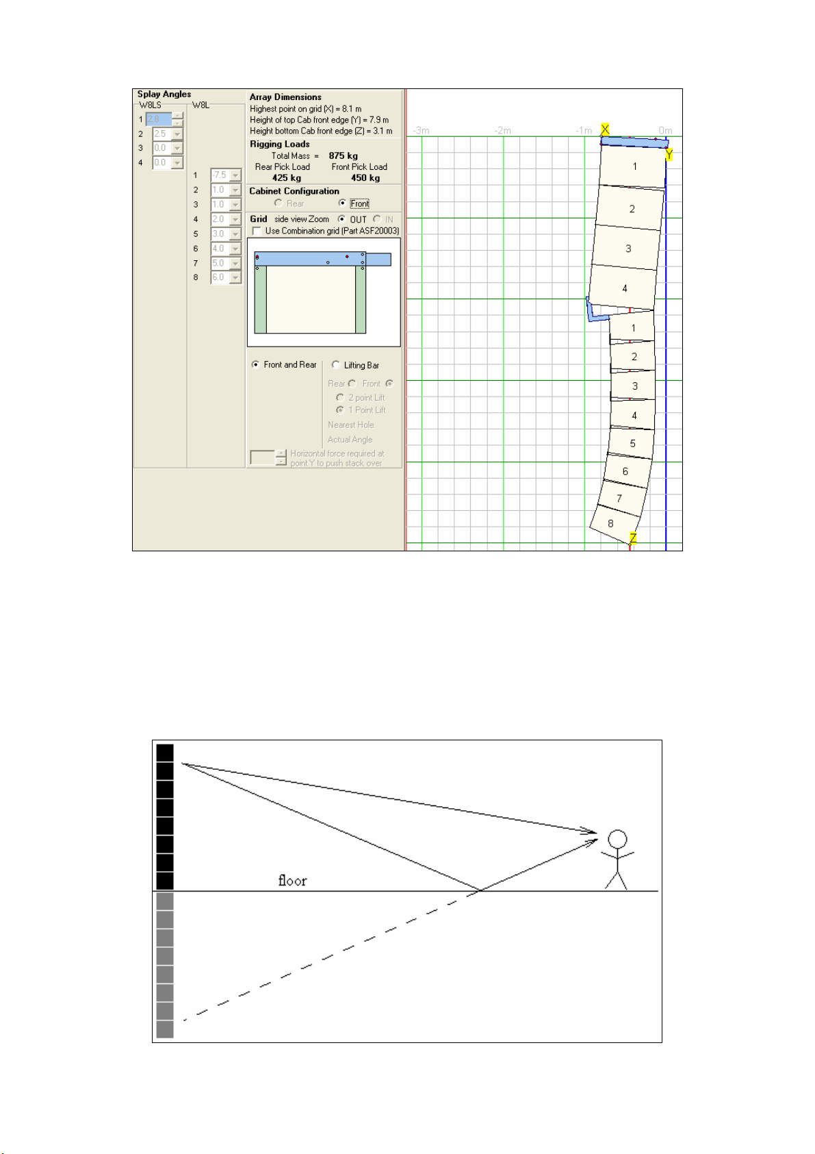 The following illustration shows an example of a flat-fronted horizontal array electronically splayed to