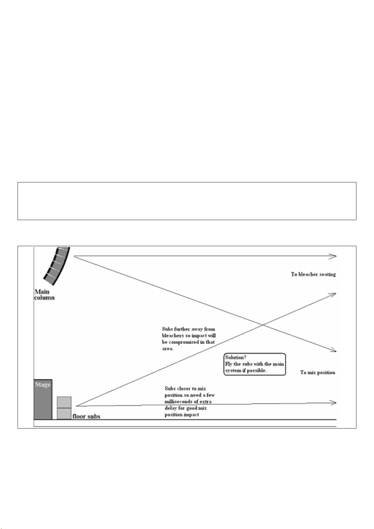 In the following example, the off-axis listener may hear delayed sound from the right hand system.