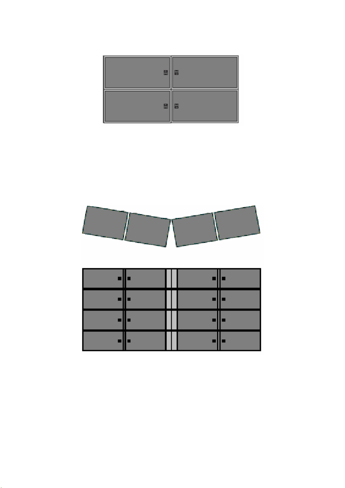 Example 3 shows a very high power dance or rock set-up for a narrow “shoe box” venue. Note the four-wide