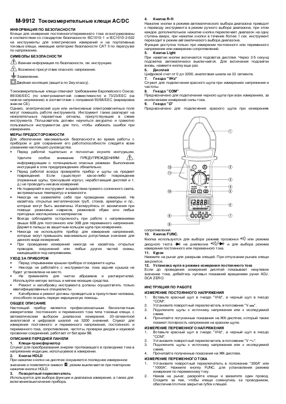 Токоизмерительные клещи отвечают требованиям Европейского Союза: