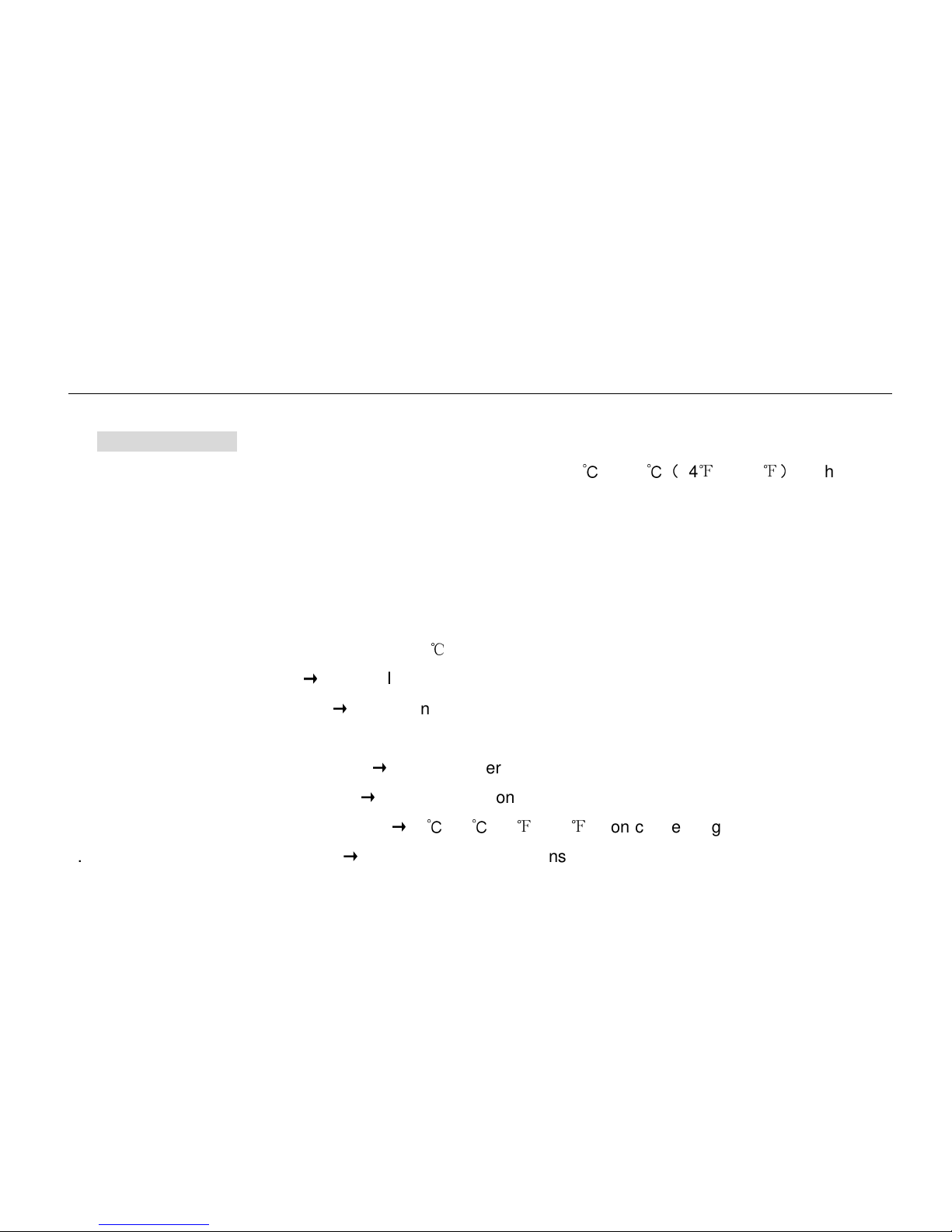 When the meter was first power on, the default scale setting is set at Celsius℃ scale. The user may change it
