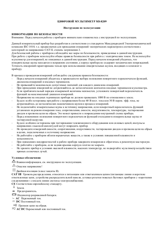 комиссии IEC-1010, т.е. предназначен для проведения измерений электрических параметров в соответствии с