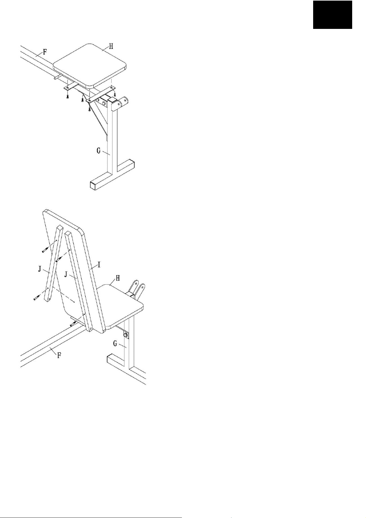 Befestigen Sie 2 Quadratstützen (J) an der Hauptstange (F).