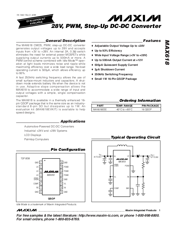 28V, PWM, Step-Up DC-DC Converter