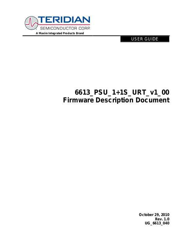 TSC 78M6613 PSU 1+1S URT V1.00,Oct 15 2010(c) 2010 Teridian Semiconductor Corp.