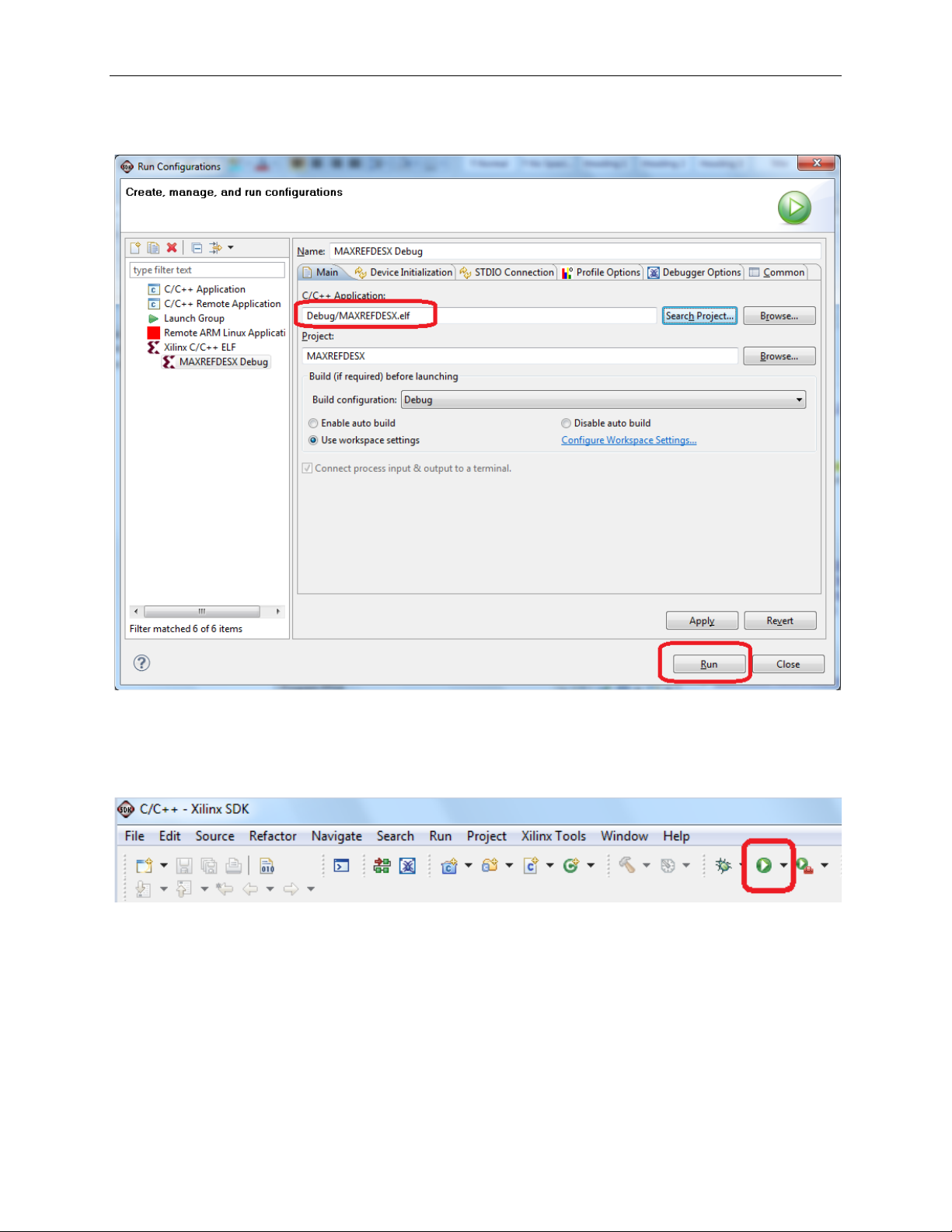 Once the Debug/MAXREFDES12 configuration is set up once, you just need to