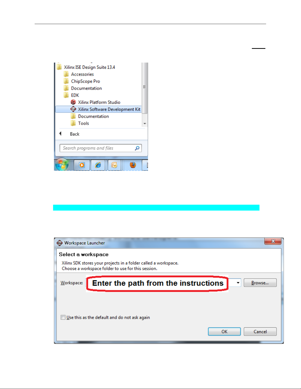 6. Open the Xilinx Software Development Kit (SDK) from the Windows Start