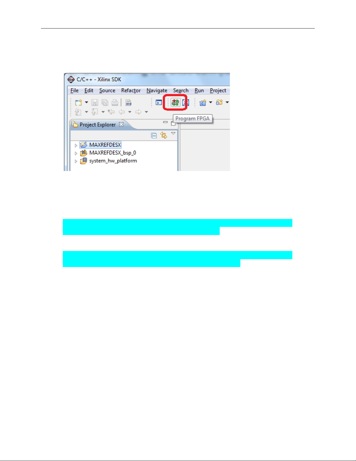 11. Use the Xilinx SDK to download and run the executable ELF (.ELF) file on the