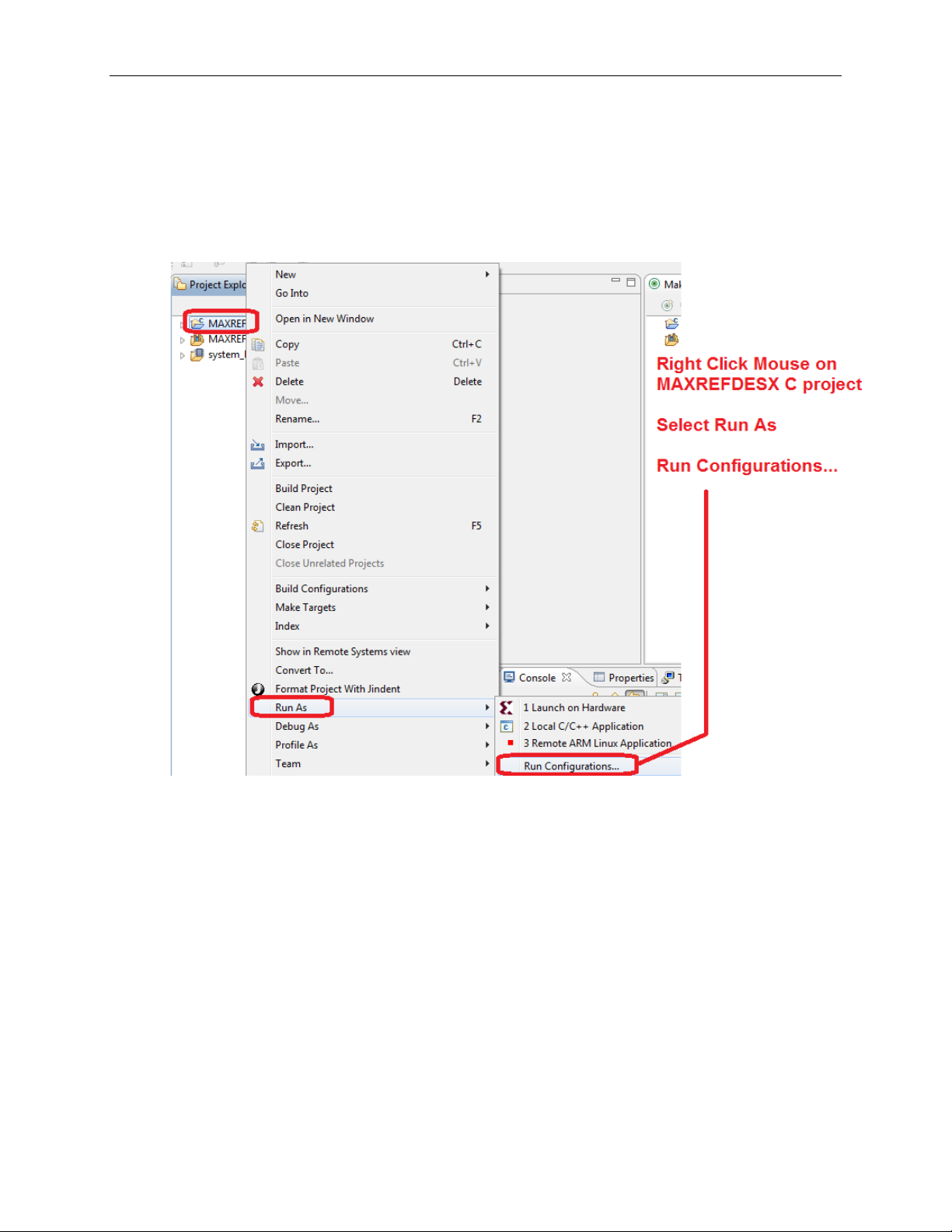 Right-click the mouse while the MAXREFDES12 C project is selected, choose