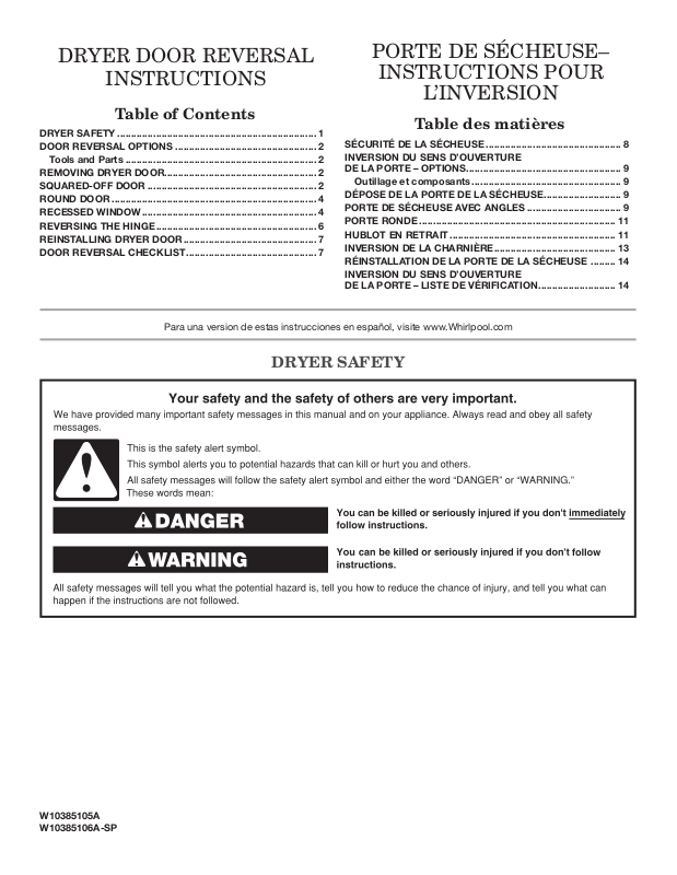 Para una version de estas instrucciones en español, visite www.Whirlpool.com