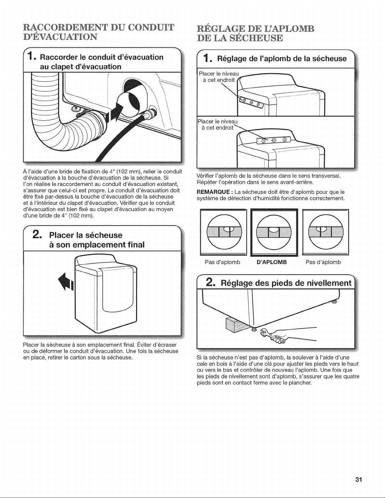 de 5" (127 mm) est n6cessaire a I'arri@e de la s6cheuse.
