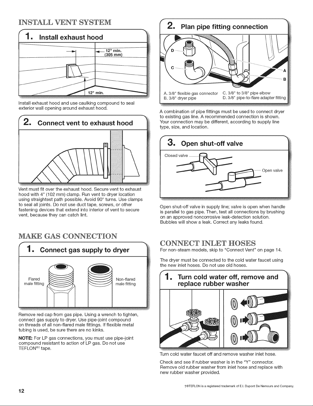 = Do not install a clothes dryer with fle×ible plastic venting materials or flexible metal
