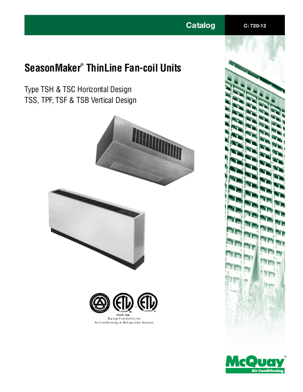 McQuay ThinLine fan-coil units are tested and rated in accordance with Air Conditioning and Refrigeration Institute (ARI)