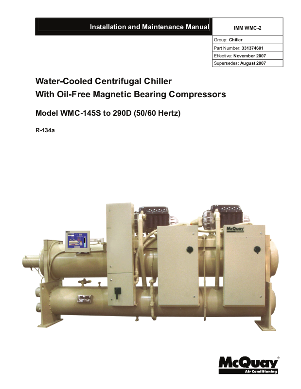 The McQuay Model WMC Centrifugal Water Chillers are complete, self-contained, automatically controlled,