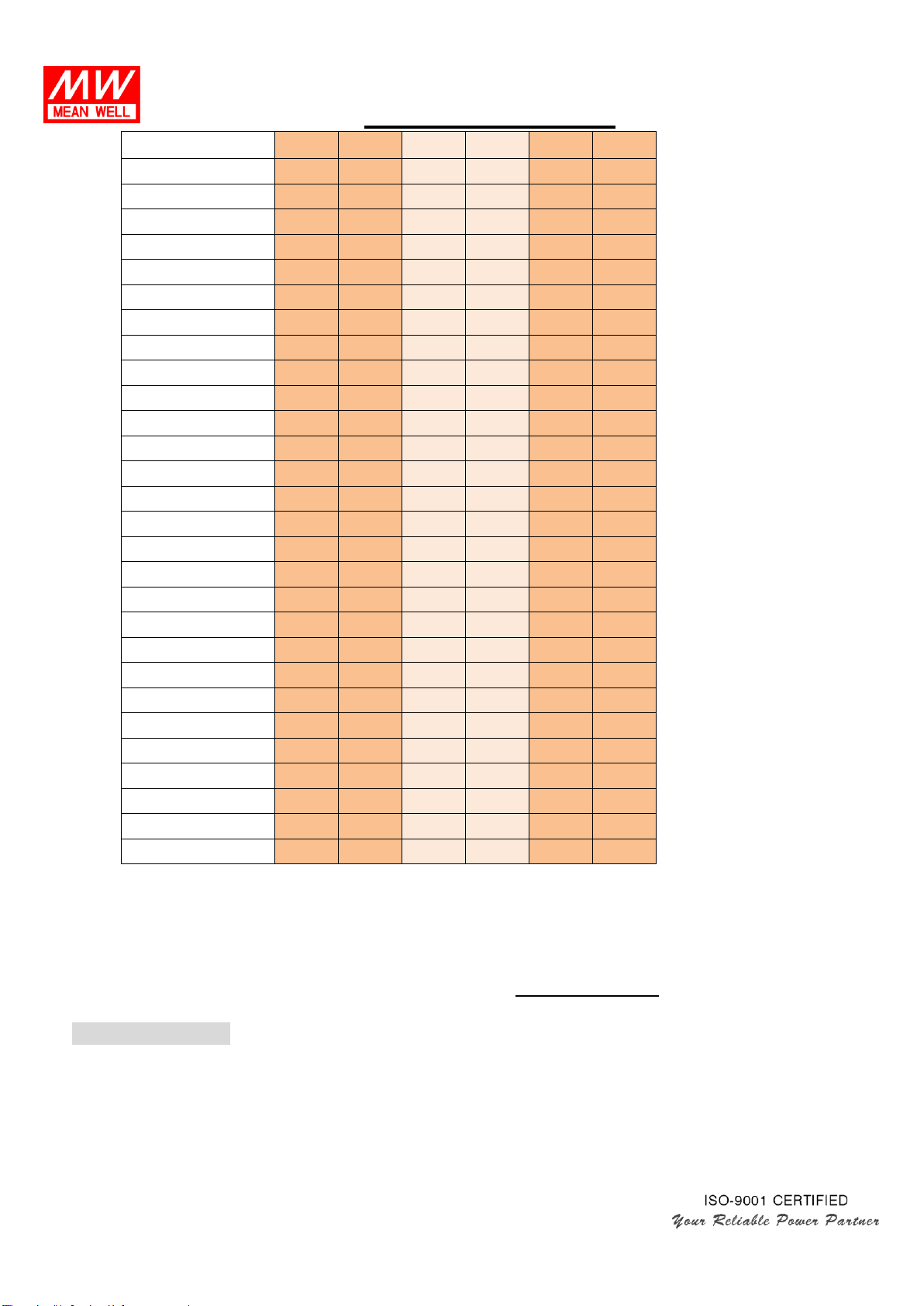 (9)For other information about the products, please refer to www.meanwell.com for details.