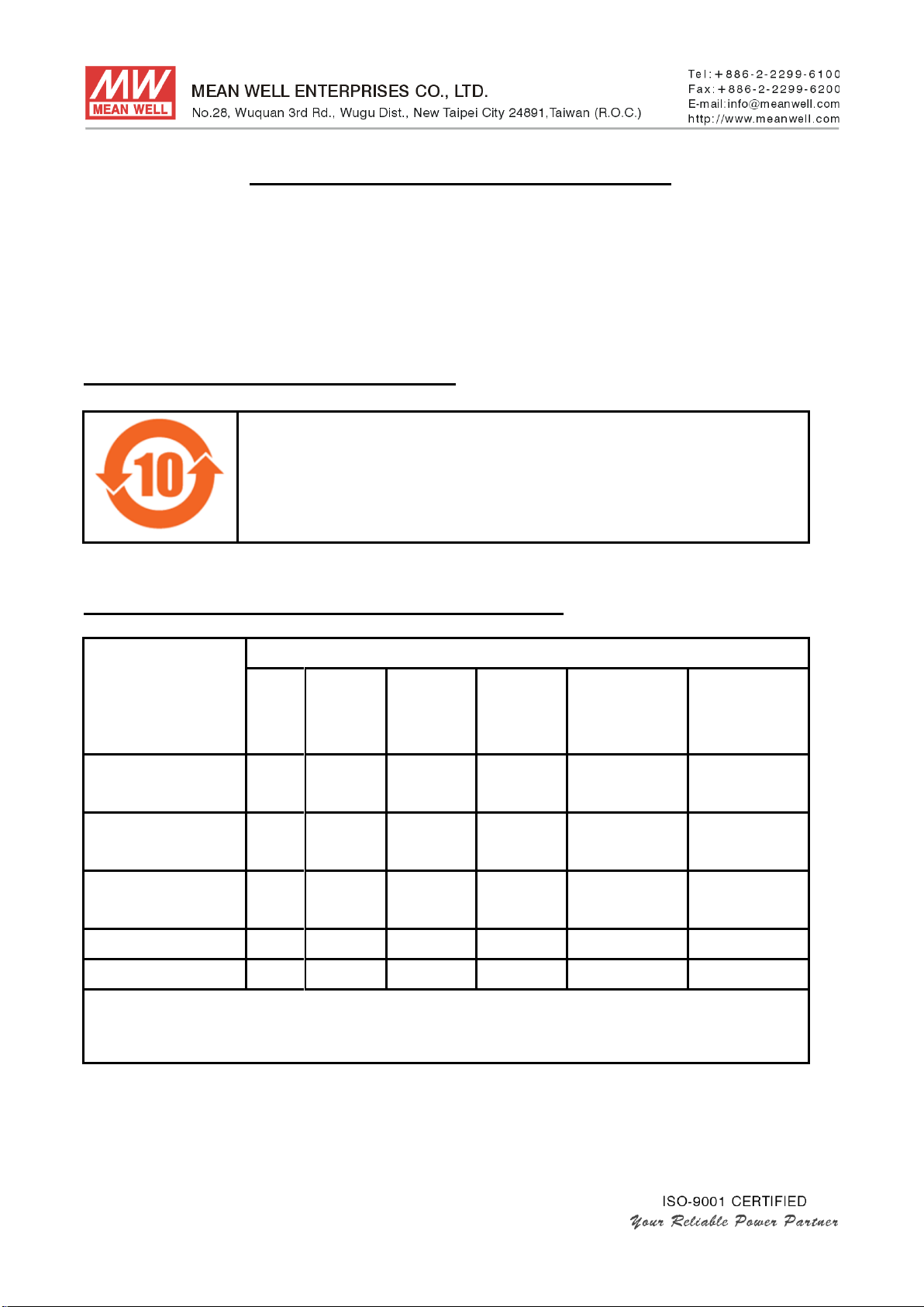 earth, MEAN WELL is confirming and announcing the conformity to China RoHS, an
