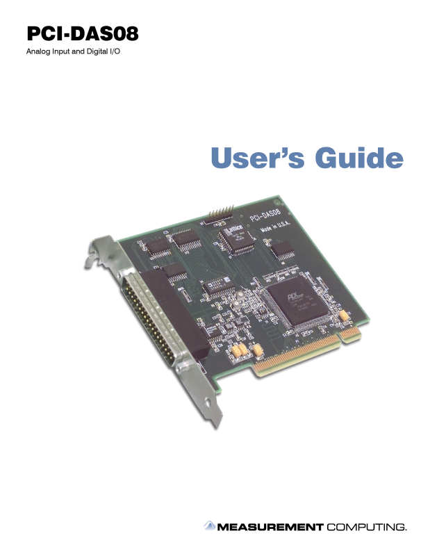 This user's guide explains how to install, configure, and use the PCI-DAS08 so that you get the most out of the