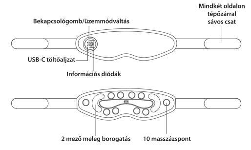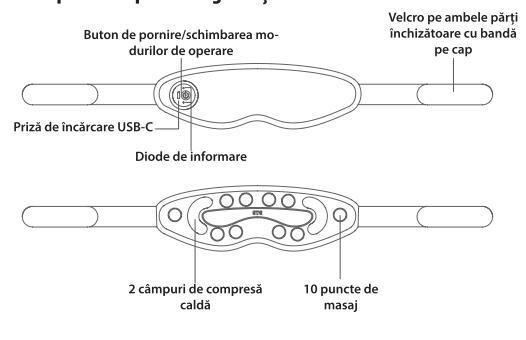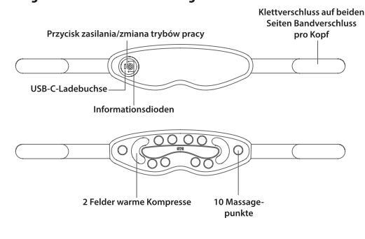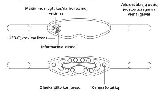 Masažuoklis turi būti dedamas ant akių taip, kad nė vienas masažo ar šildymo taškas neliestų vokų ar akių obuolių. Juostą aplink galvą pritvirtinkite lipnia juosta, kad ji tolygiai prielustų neis veido het neorizonauti ir nenvirsiusti ir nenvirsius.
