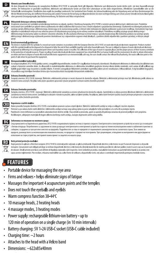 Tento produkt není zdravotnický prostředek a nelze jej používat pro terapeutické účely. Doporučujeme používat zařízení vždv 10 minut.