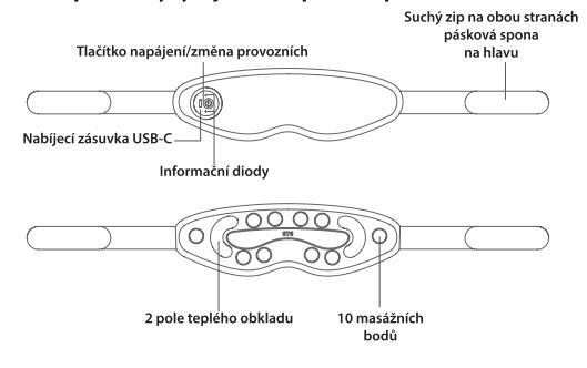Masážní přístroj by měl být umístěn na oči tak, aby se žádný z masážních nebo zahřívacích bodů nedotýkal očních víček nebc