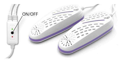 Boots Ozon Dryer 2 yra labai paprasta naudoti. Įkiškite abi prietaiso dalis į batus ir prijunkite maitinimo laidą. Laidinio nuotolinio valdymo pultelyje dega raudonas šviesos diodas, o tai reiškia, kad įrenginys maitinamas.