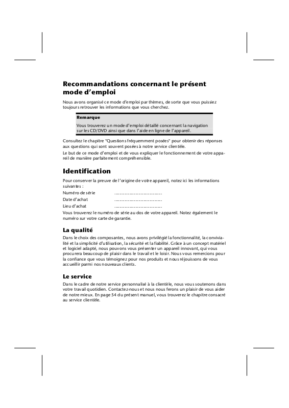 de notre mieux. En page 54 du présent manuel, vous trouverez le chapitre consacré