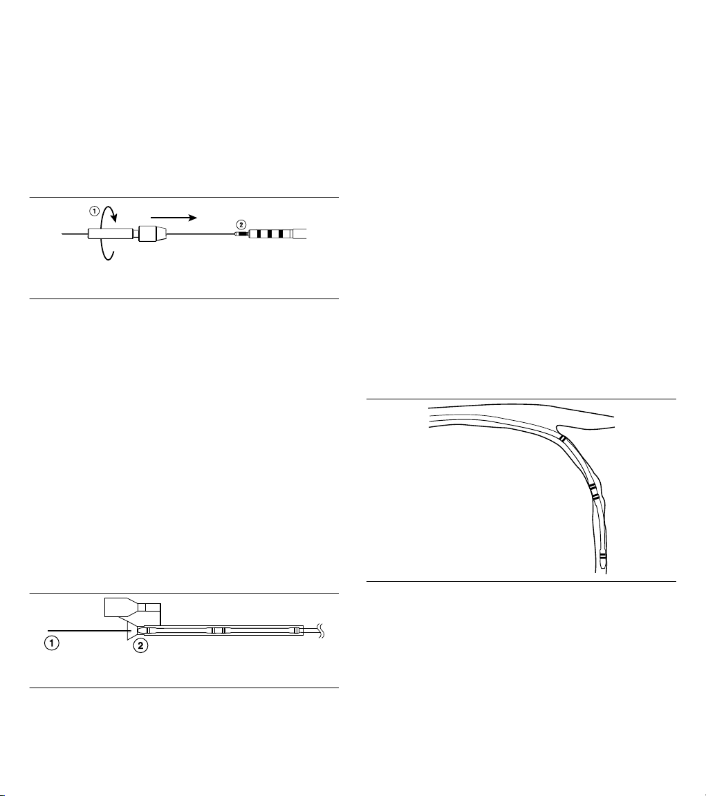 the lead body at an acute angle, rotate the device to wrap the