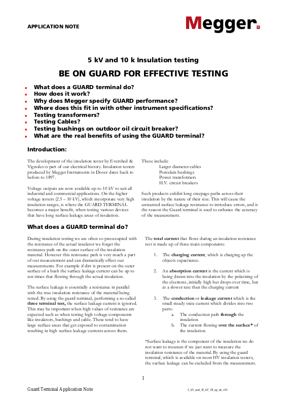 Stitch in Time’ the complete guide to Electrical Insulation Testing available at www.Megger.com.