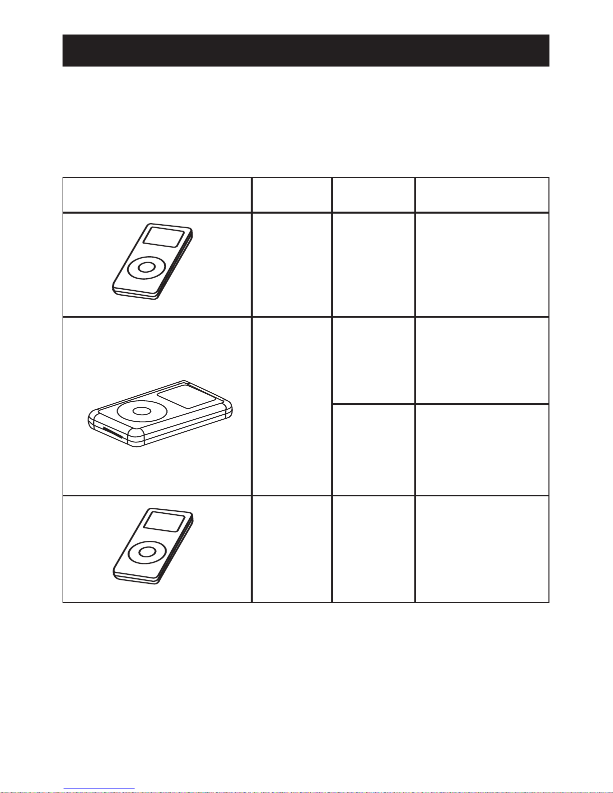 Ubique su iPod en la tabla a continuación y seleccione el puerto universal respectivo (el