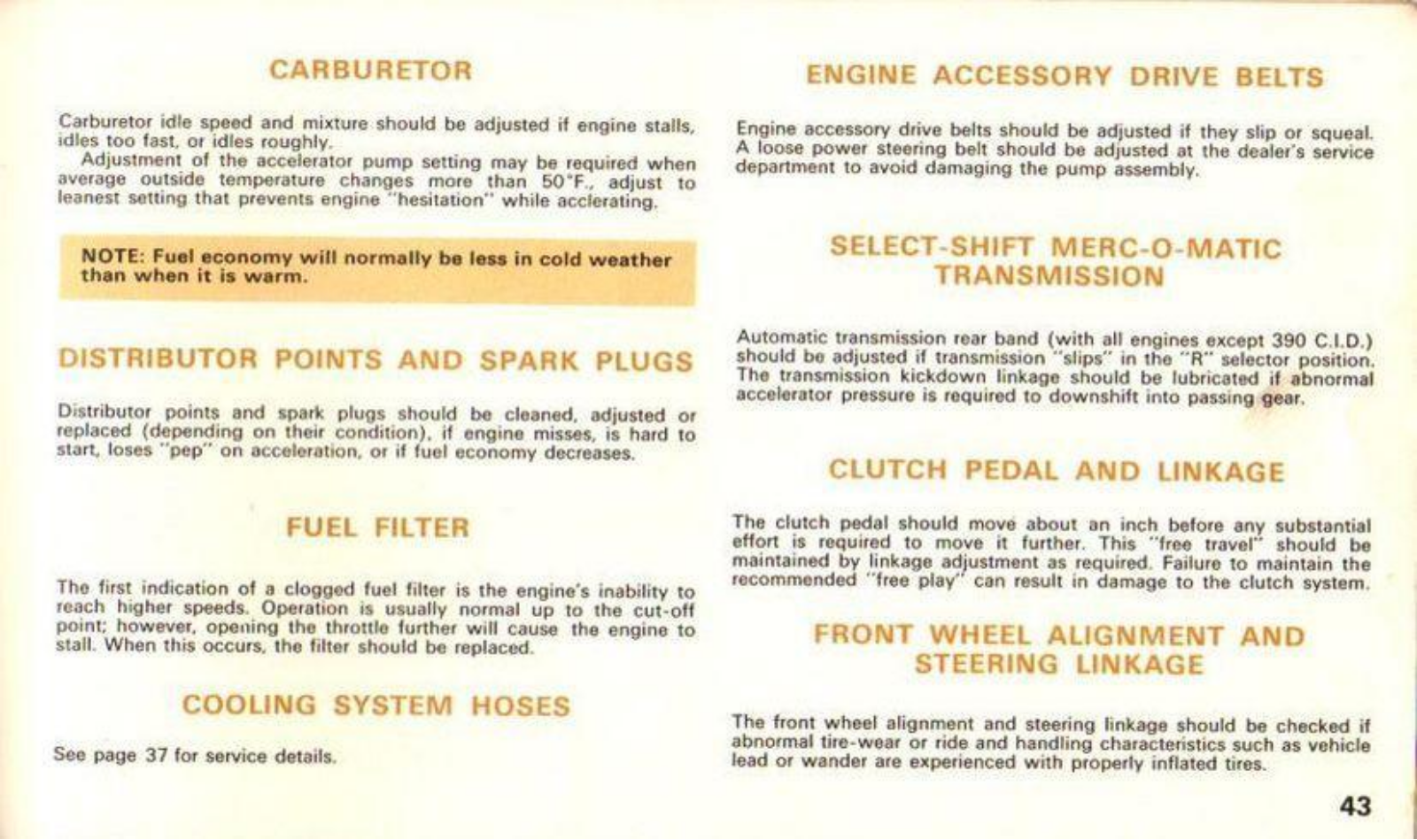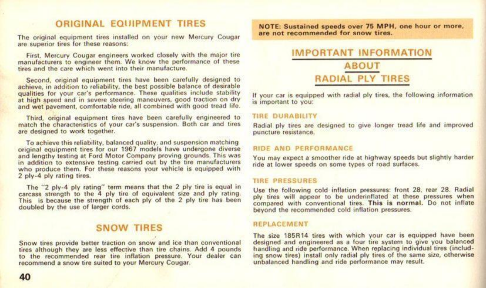 Mercury Cougar 1967 Operating Instructions
