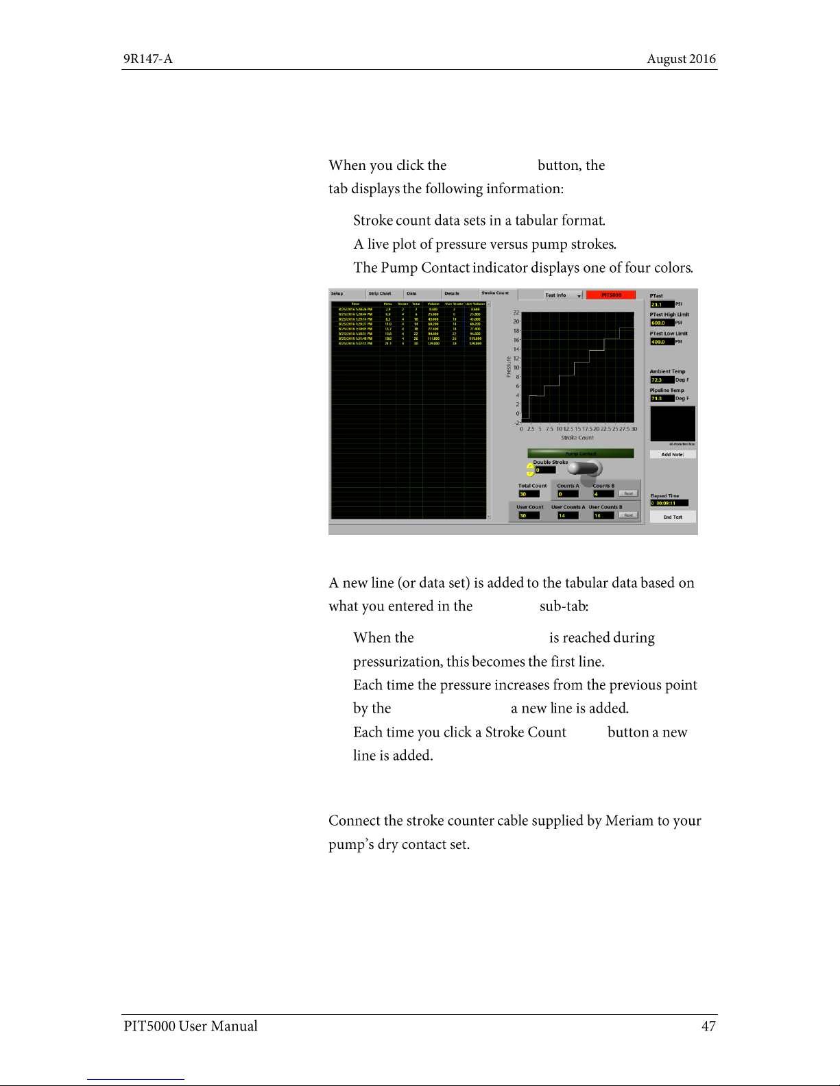 PIT5000 supplies +5 V output to pump for Stroke Counter function.