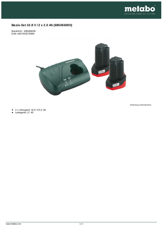 Metabo Basis-Set 10.8 V - 2 x 2.0 Ah User Manual [de]