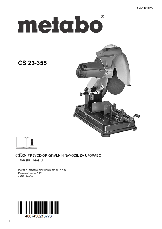 Hvala za vaše zaupanje ob nakupu Metabo stroja. Vsak izdelek iz proizvodnega programa Metabo je pod skrbnim