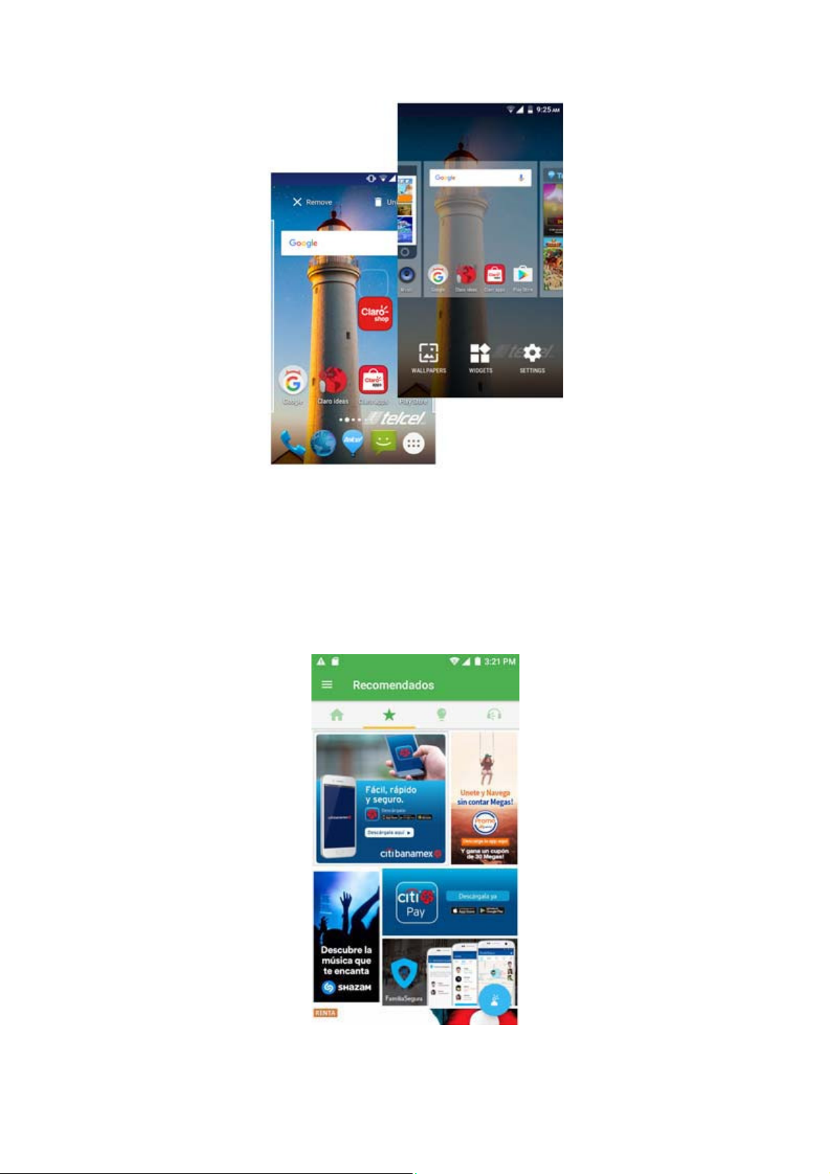 wallpapers. You can also remove items from the home screen,