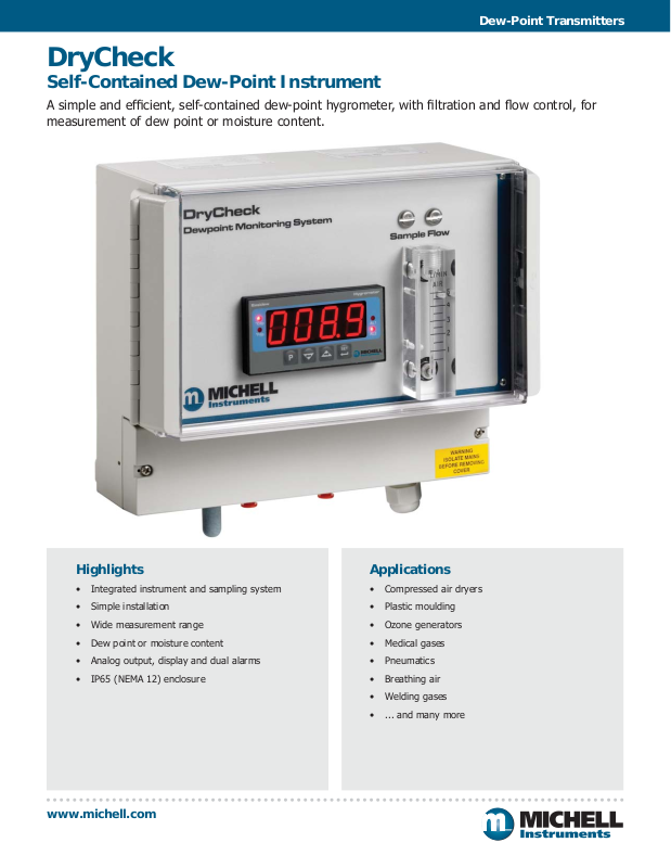 Michell Instruments adopts a continuous development programme which sometimes necessitates specifi cation changes without notice.