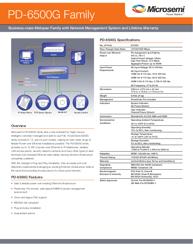 flexible Power over Ethernet installations possible. The PD-6500G family