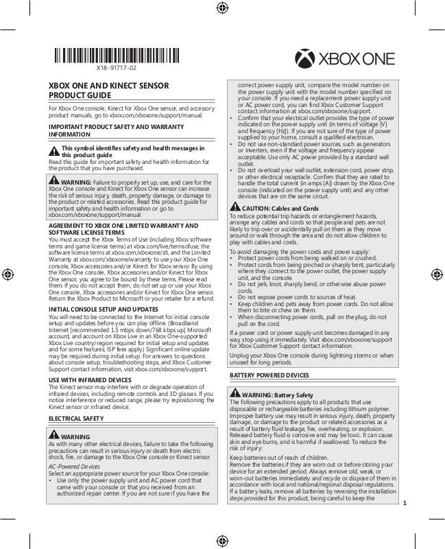 Microsoft Xbox One and KINECT sensor Instruction manual
