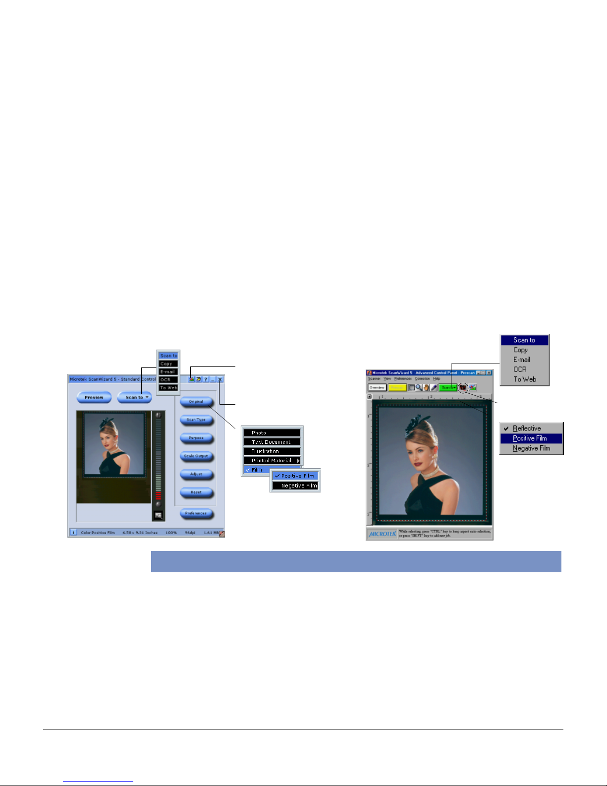 4 . After launching ScanWizard 5, you may want to change the scan material. To do