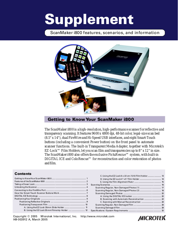 – With ColoRescue, the ScanMaker i800 restores faded colors in photos and film,