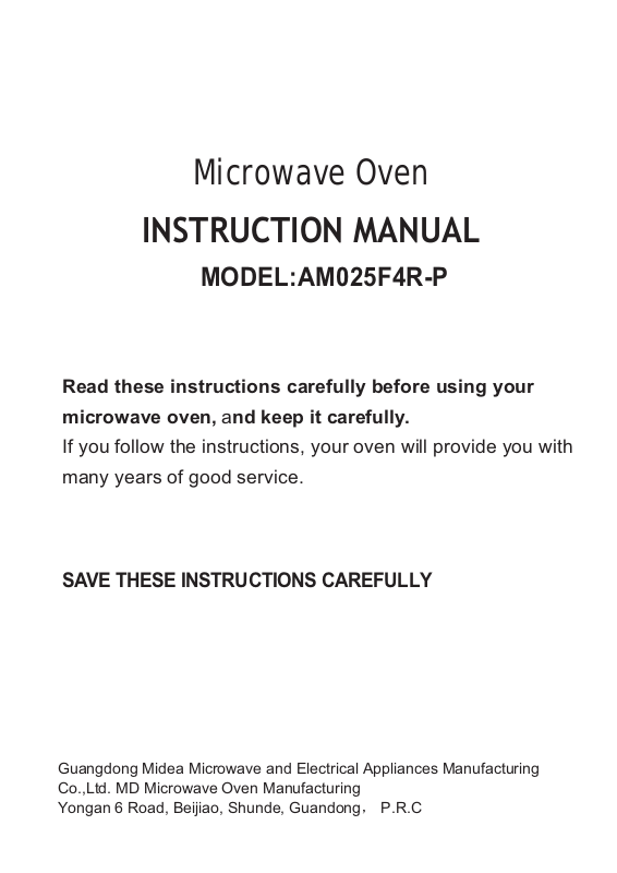 Midea Kitchen Appliances AM025F4R Users Manual