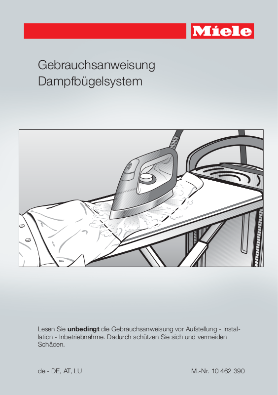 Gebrauchsanweisung. Sie gibt wichtige Hinweise für die Sicherheit, den Gebrauch und die Wartung des Dampfbügelsystems. Dadurch schützen Sie sich und verhindern Schäden am Dampfbügelsystem.